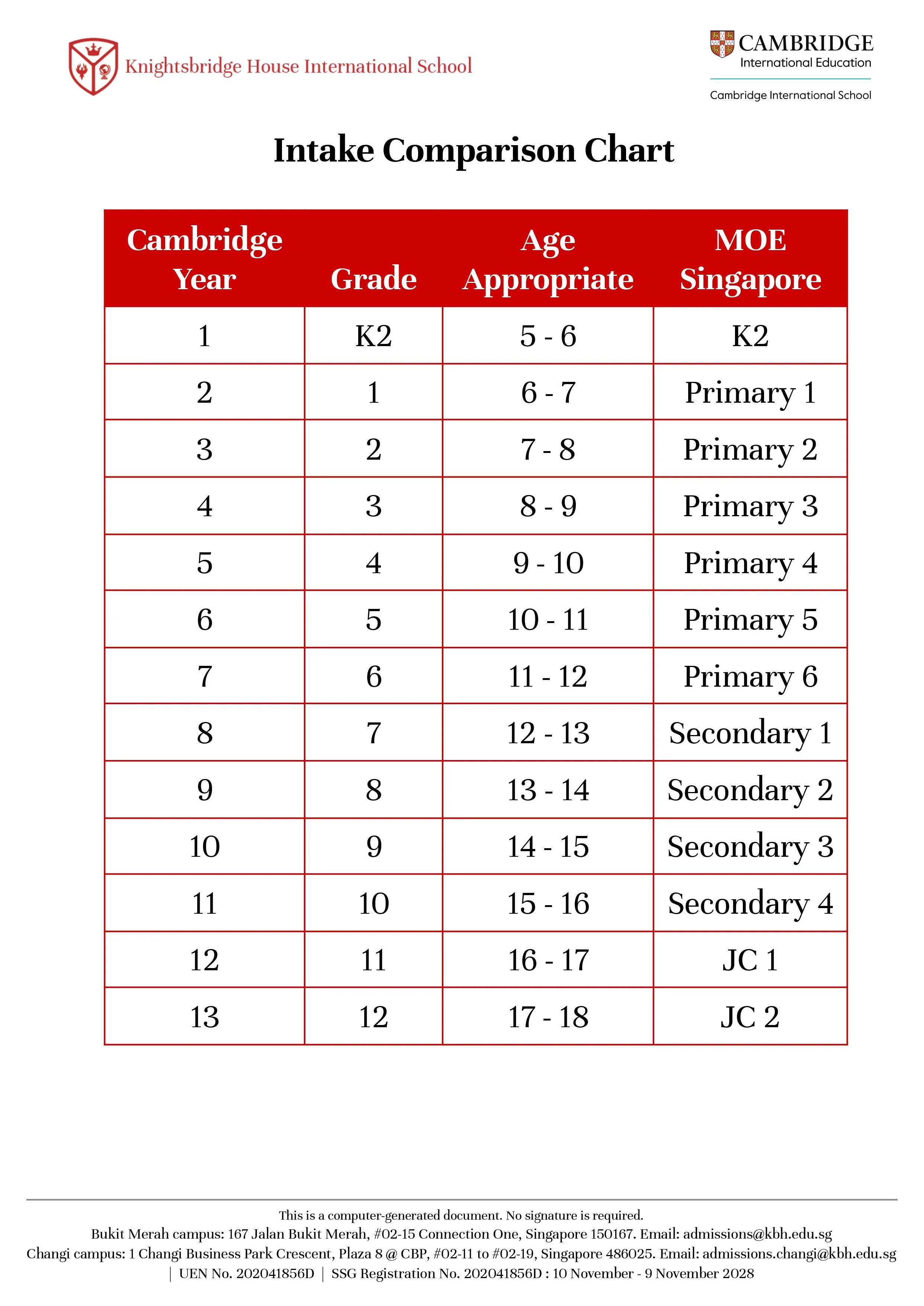 Knightsbridge House International School Course Entry Requirements
