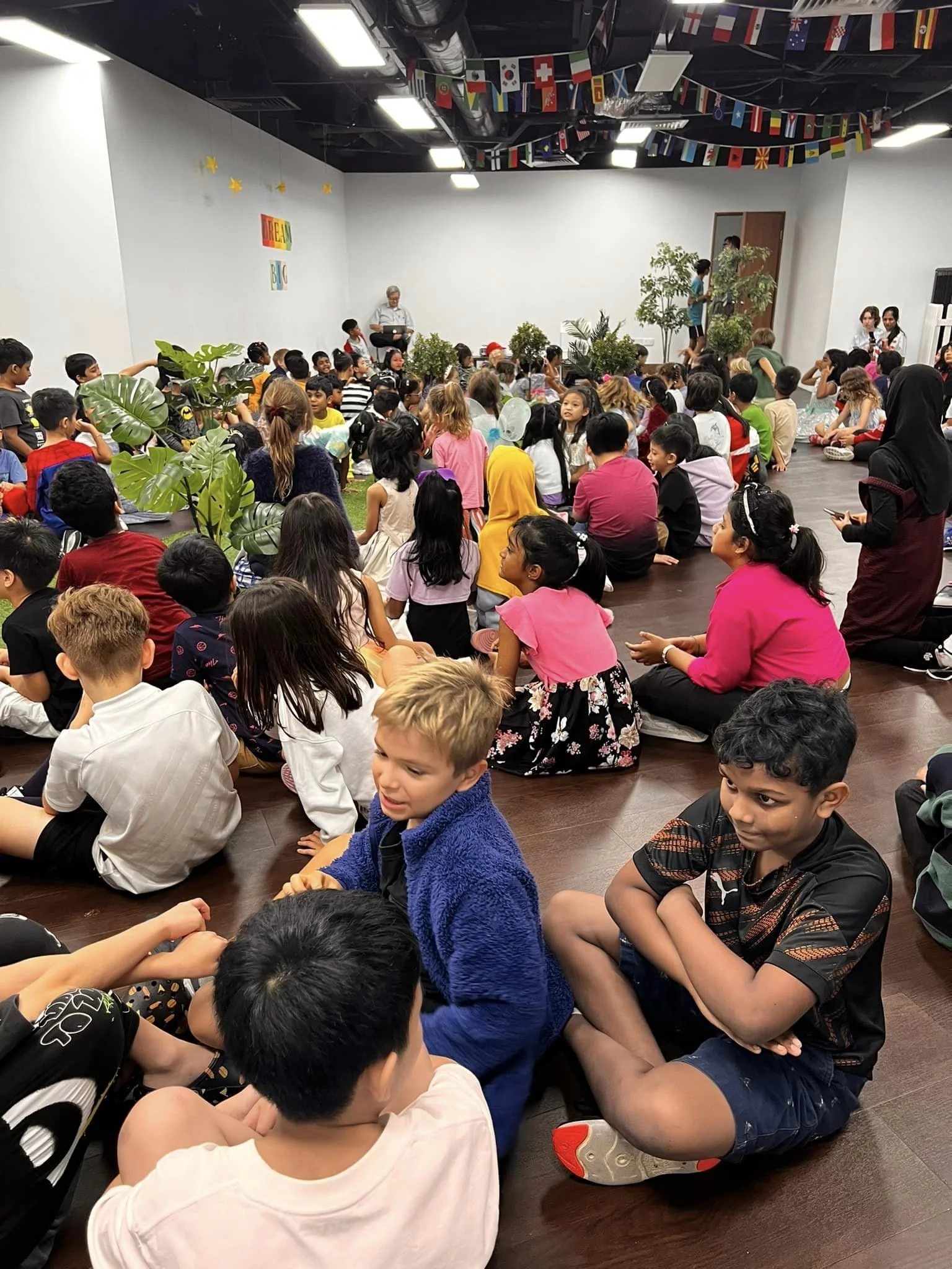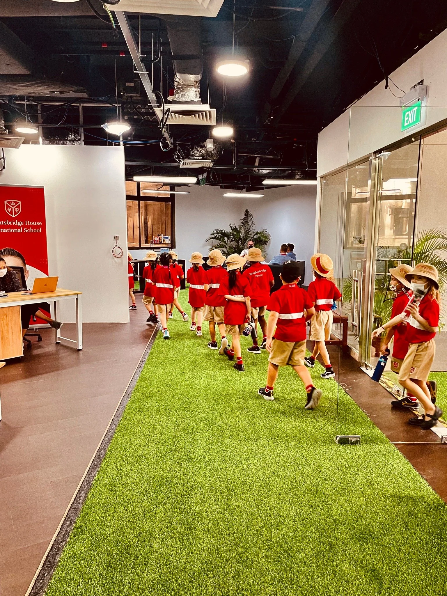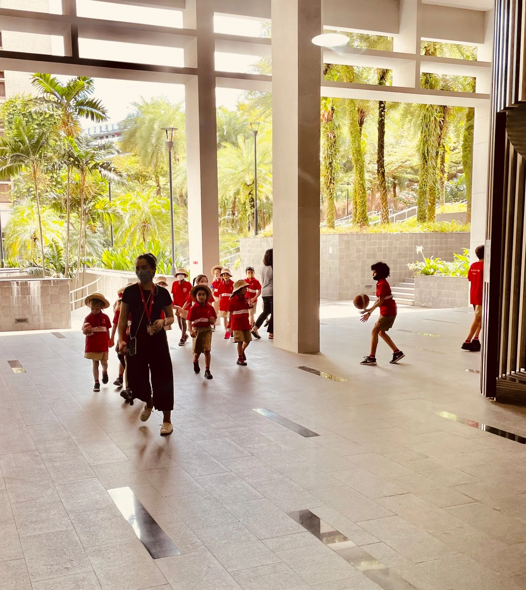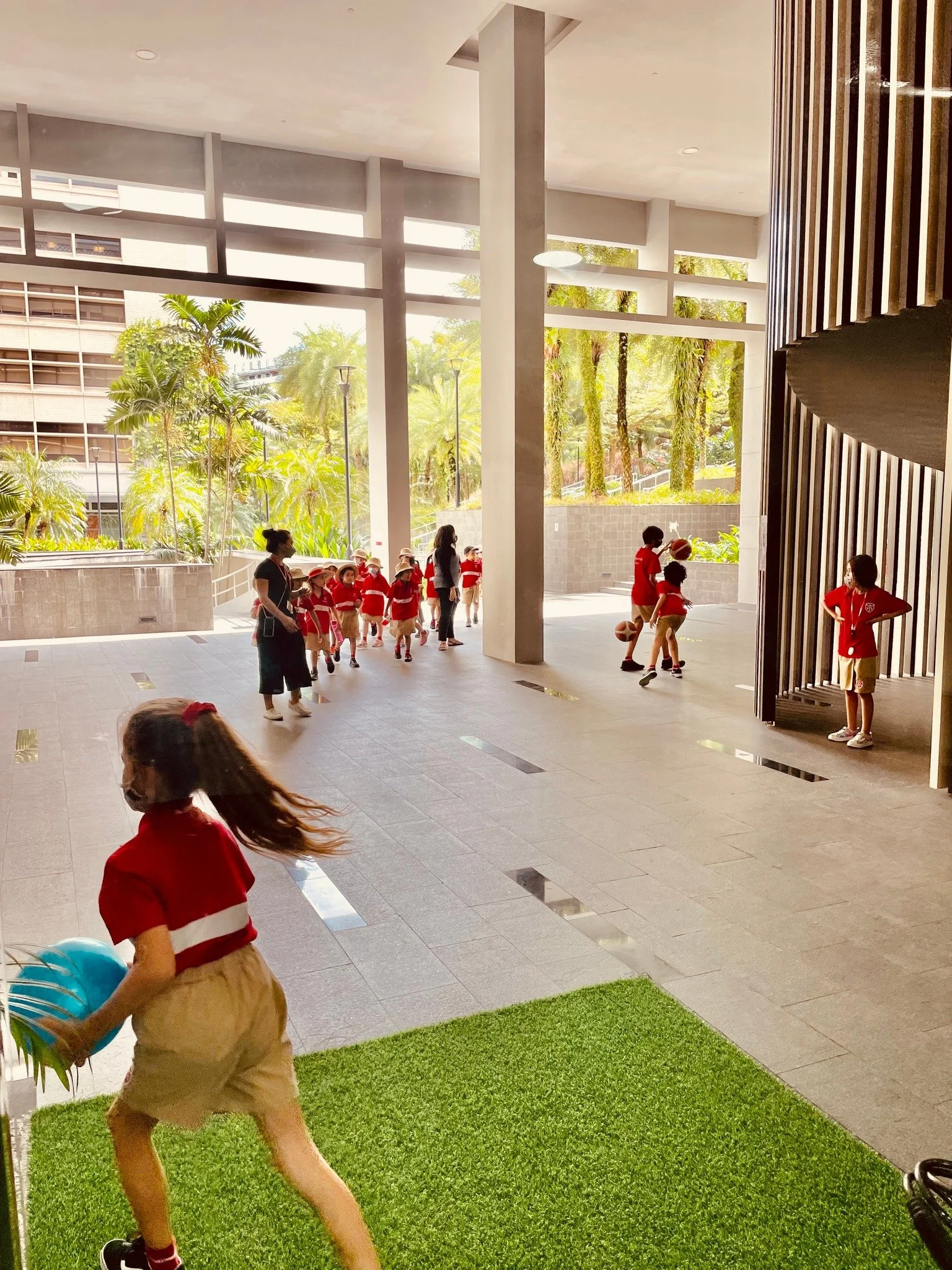 Our Bukit Merah campus comprises of large and inspiring classrooms with open spaces for collaborative learning and two indoor multi-purpose atriums for indoor activities (such as yoga, gymnastics, martial arts, and school assemblies), an indoor playground, a library, and a canteen area. The campus is approximately 20,000 sq. ft in size and can accommodate 500 students. We utilize the beautiful gardens outside our campus for outdoor play at recess and for PE lessons. For Basketball, Soccer, Badminton ECA’s we take the students to the courts across Jalan Bukit Merah. For swimming, we use the swimming pools at the Delta Swimming Complex on 900 Tiong Bahru Rd.