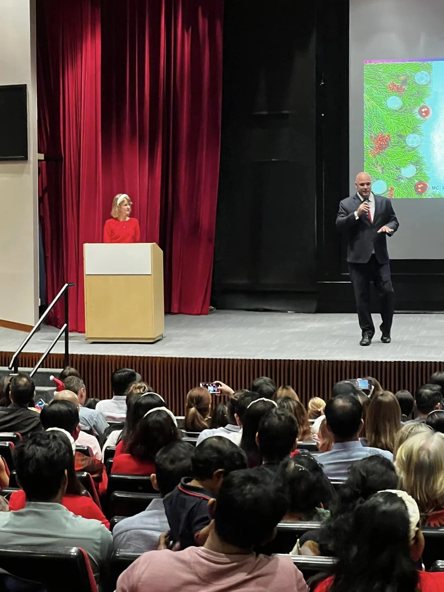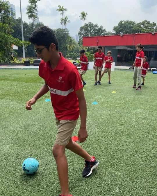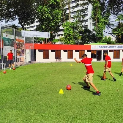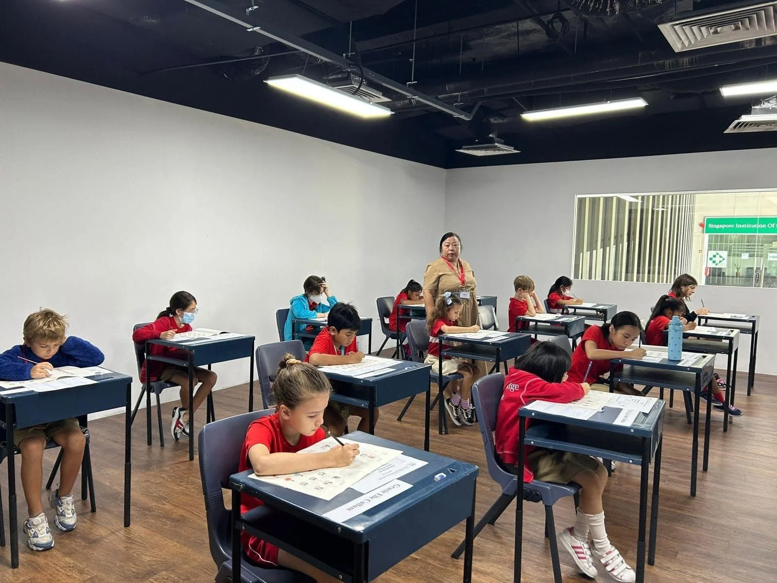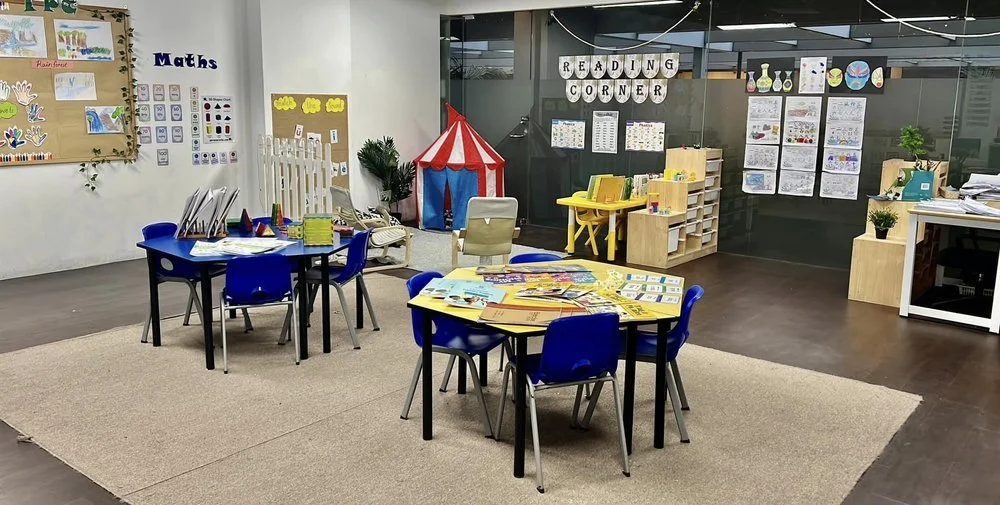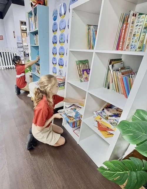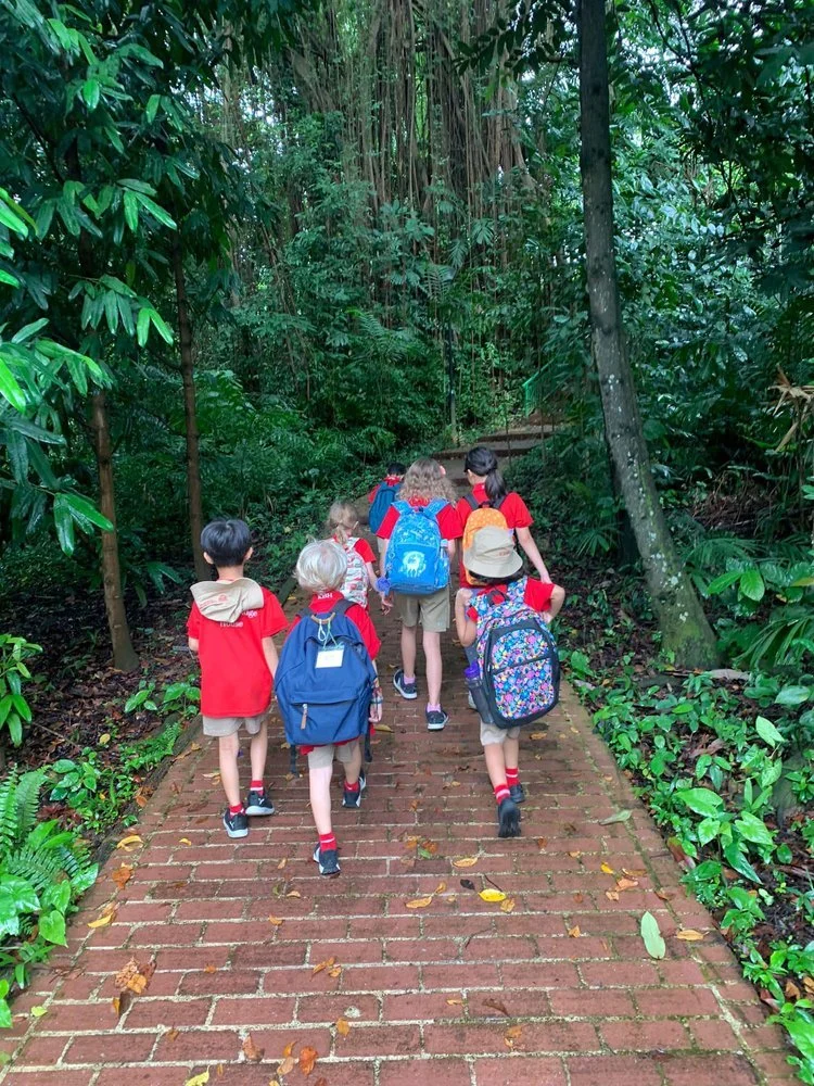 Our Bukit Merah campus comprises of large and inspiring classrooms with open spaces for collaborative learning and two indoor multi-purpose atriums for indoor activities (such as yoga, gymnastics, martial arts, and school assemblies), an indoor playground, a library, and a canteen area. The campus is approximately 20,000 sq. ft in size and can accommodate 500 students. We utilize the beautiful gardens outside our campus for outdoor play at recess and for PE lessons. For Basketball, Soccer, Badminton ECA’s we take the students to the courts across Jalan Bukit Merah. For swimming, we use the swimming pools at the Delta Swimming Complex on 900 Tiong Bahru Rd.